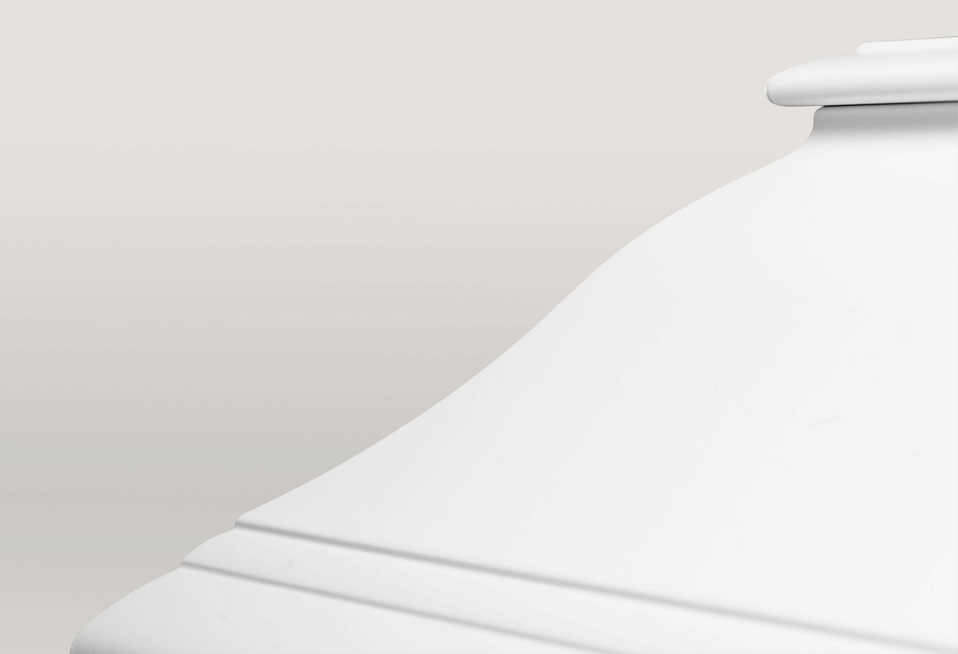 Vitlackad kista med vackert handmålat motiv av blåklocka. Inredning bestående av av kudde och täcke med överlakansflik i linnekvalitet. Madrass i nonwoven-textil. Lock- och sidoklädsel i bomullstyg.