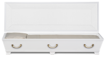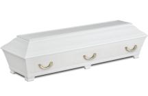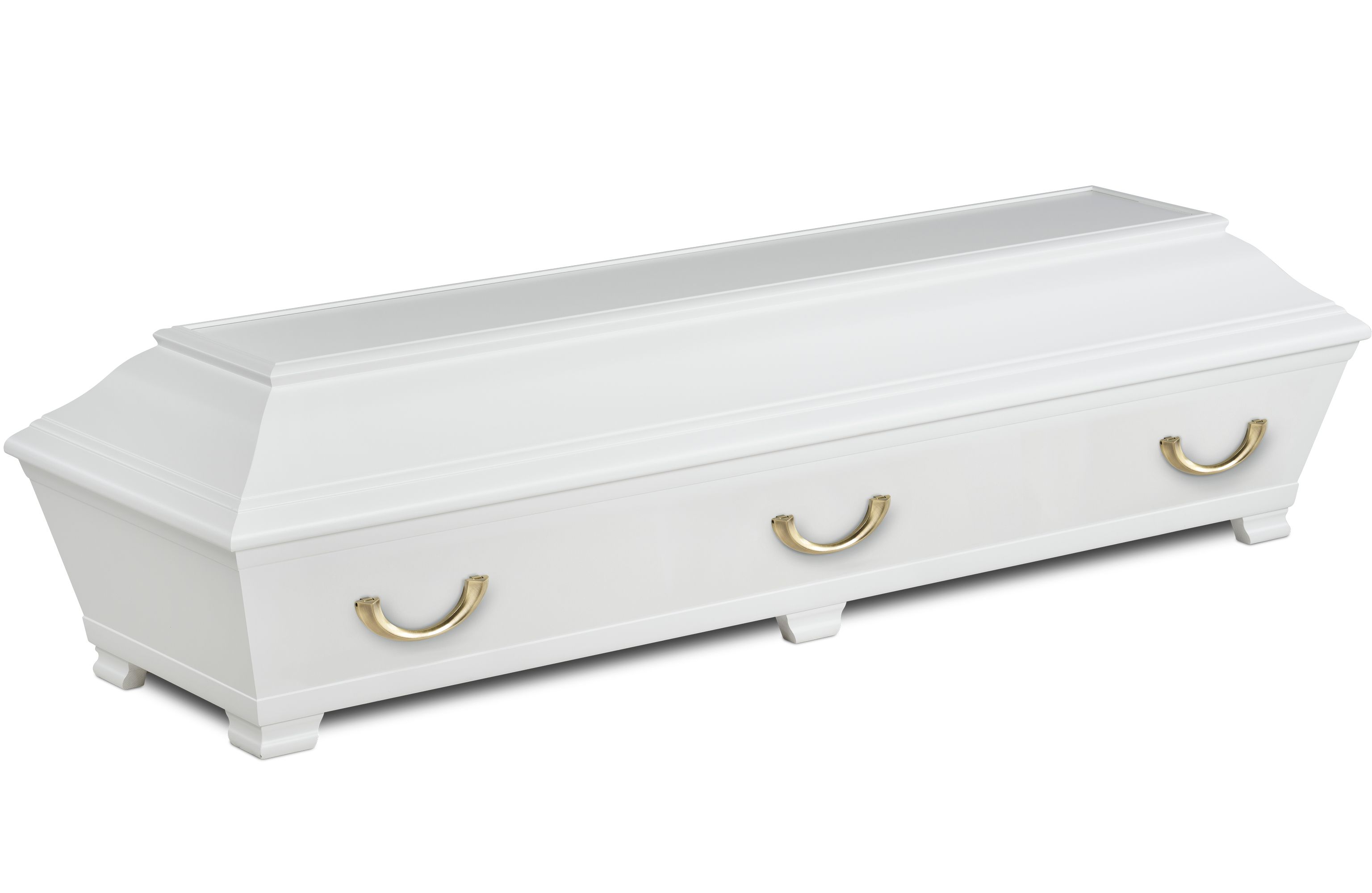 Elegant kista som är lackad i vit, svart eller valfri NCS-färg. Inredning bestående av av kudde och täcke med överlakansflik i linnekvalitet. Madrass i nonwoven-textil. Lock- och sidoklädsel i bomullstyg. I inredningsbilden används lockstöd.