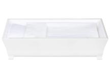 Kista av massiv furu med bottenplatta av spånskiva. Vitmålad med blå fjäril. Kistan är klädd i underkista och lock. Madrass ingår. Täcke och kudde kan köpas separat. Mått & detaljer Löst inrett lock som skruvas fast. Längd: 600 mm Yttermått: 652 mm Bredd: 320 mm
