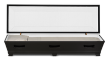 Elegant kista som är lackad i vit, svart eller valfri NCS-färg. Inredning bestående av av kudde och täcke med överlakansflik i linnekvalitet. Madrass i nonwoven-textil. Lock- och sidoklädsel i bomullstyg. I inredningsbilden används lockstöd.
