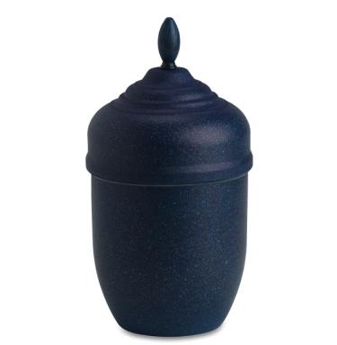 Urna av pressad, genomfärgad bark. Förgängligt material.