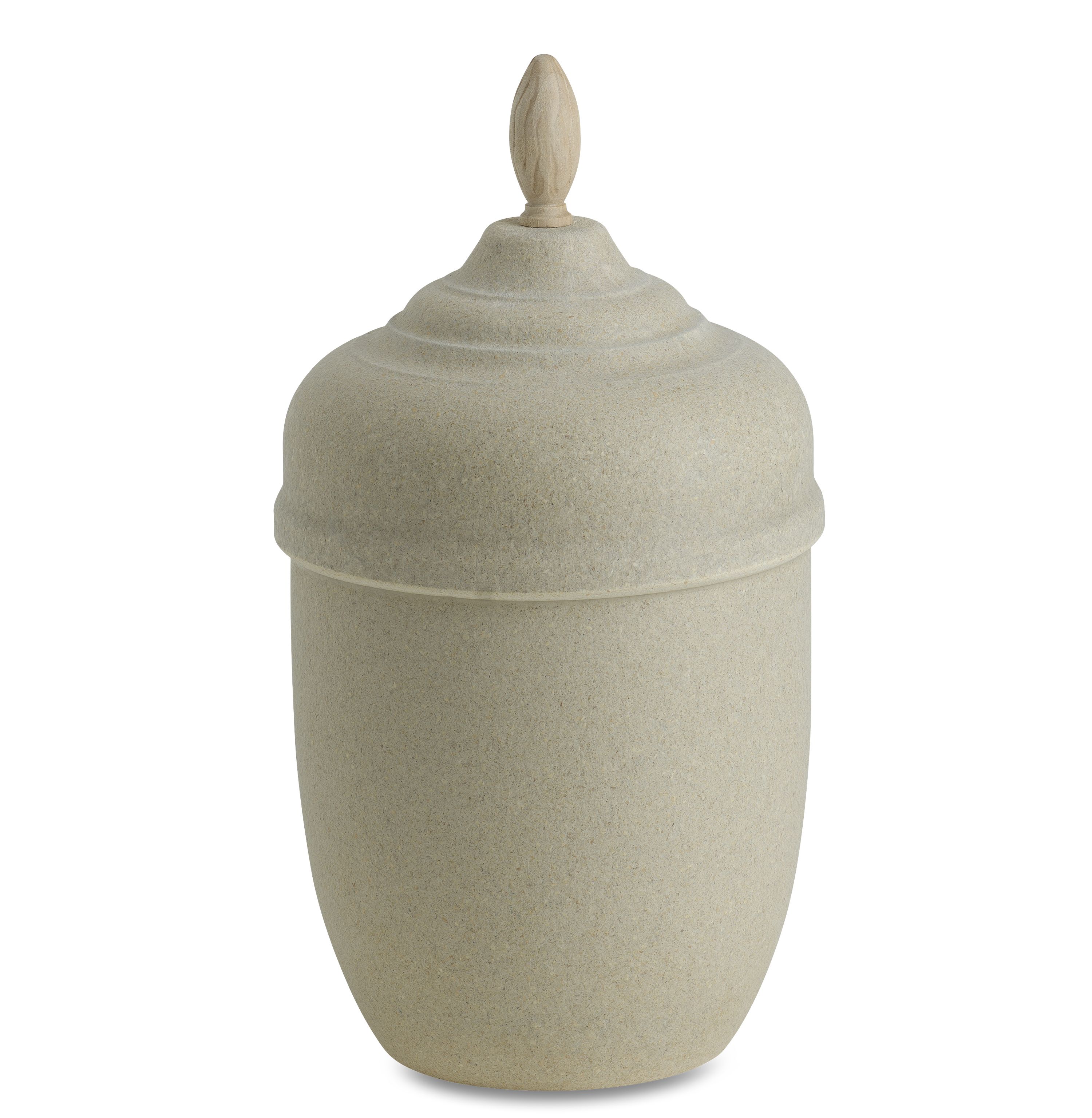 Urna av pressad, genomfärgad bark. Förgängligt material.