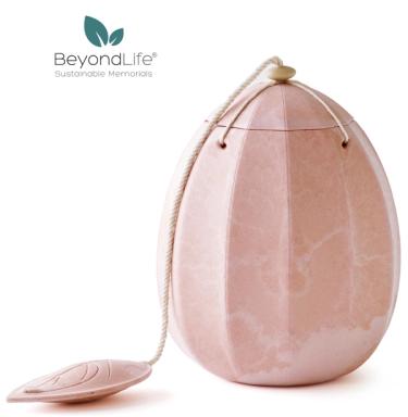 Beyond Life är en unik danskdesignad urna i ett certifierat, 100% biologiskt nedbrytbart material och formen på urnan är inspirerad av naturens organiska former.