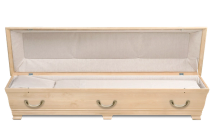 Massiv kista i björk med stilren formgivning, gångjärn och nyckellås.. Tyginredning i form av madrass, kudde och täcke med överlakansflik i bomull. Stilrena detaljinslag i täcket. Lock- och sidoklädsel i tyg.