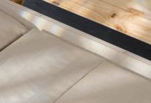 madrass, kudde och täcke med överlakansflik. All inredning i linne, inklusive sidoklädsel. Oklätt lock. I inredningsbilden används lockstöd.