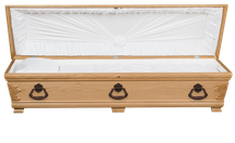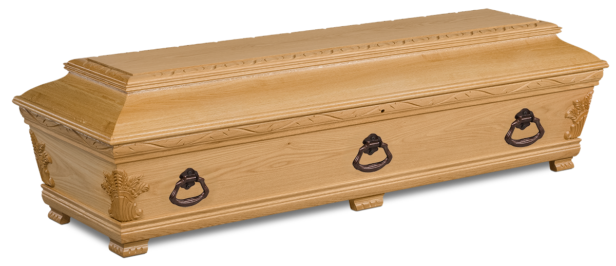 Vår Royal är ett förstklassigt hantverk i massiv ek med gångjärn och nyckellås. Går att få klarlackad eller brunbetsad. Tyginredning i form av madrass, kudde och täcke med överlakansflik i bomull. Klassiskt noppat täcke och lock med veckade sidostycken och vackert draperade dekorationer.