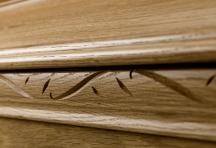 Vår Royal är ett förstklassigt hantverk i massiv ek med gångjärn och nyckellås. Går att få klarlackad eller brunbetsad. Tyginredning i form av madrass, kudde och täcke med överlakansflik i bomull. Klassiskt noppat täcke och lock med veckade sidostycken och vackert draperade dekorationer.