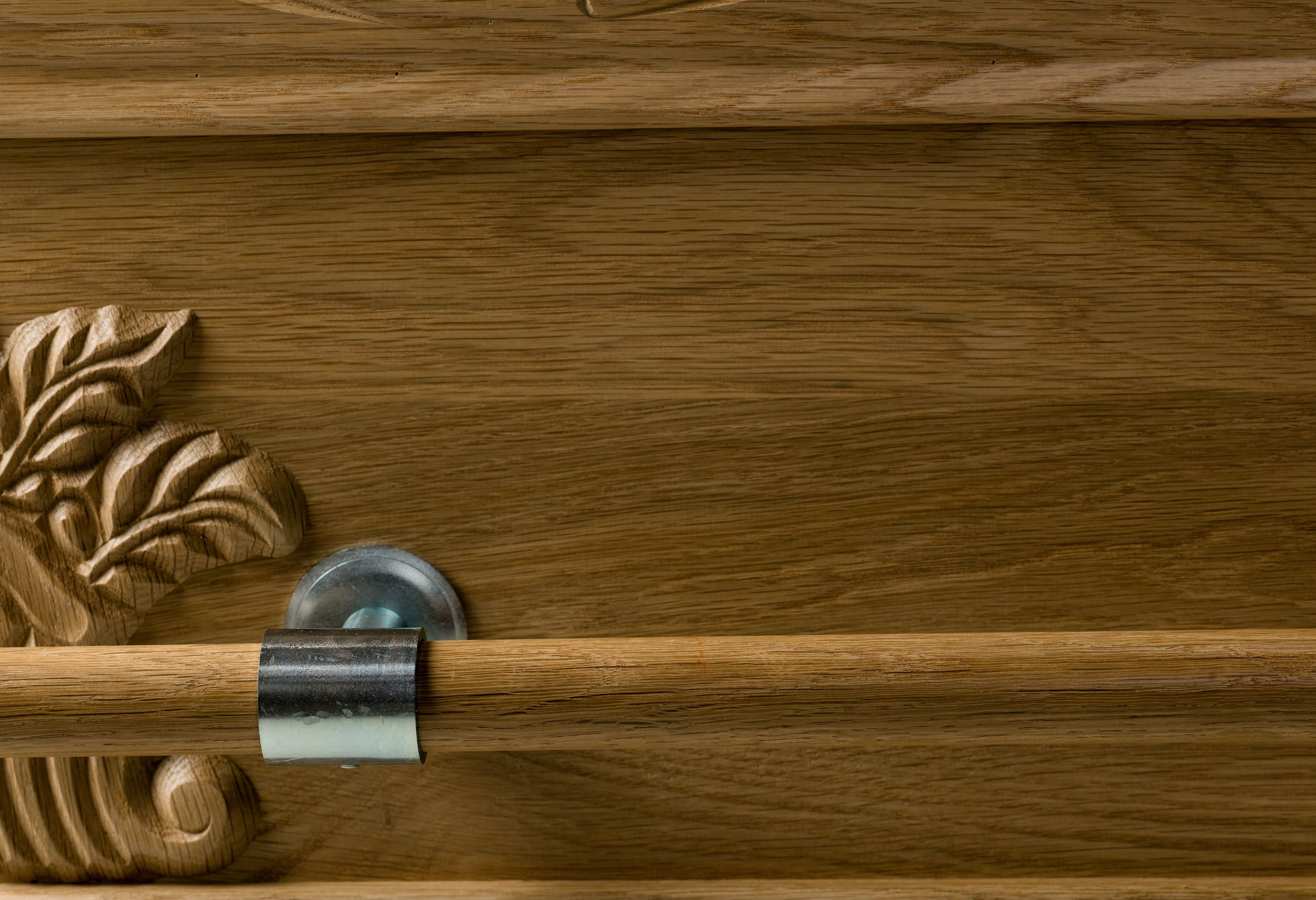 Vår Royal är ett förstklassigt hantverk i massiv ek med gångjärn och nyckellås. Går att få klarlackad eller brunbetsad. Tyginredning i form av madrass, kudde och täcke med överlakansflik i bomull. Klassiskt noppat täcke och lock med veckade sidostycken och vackert draperade dekorationer.